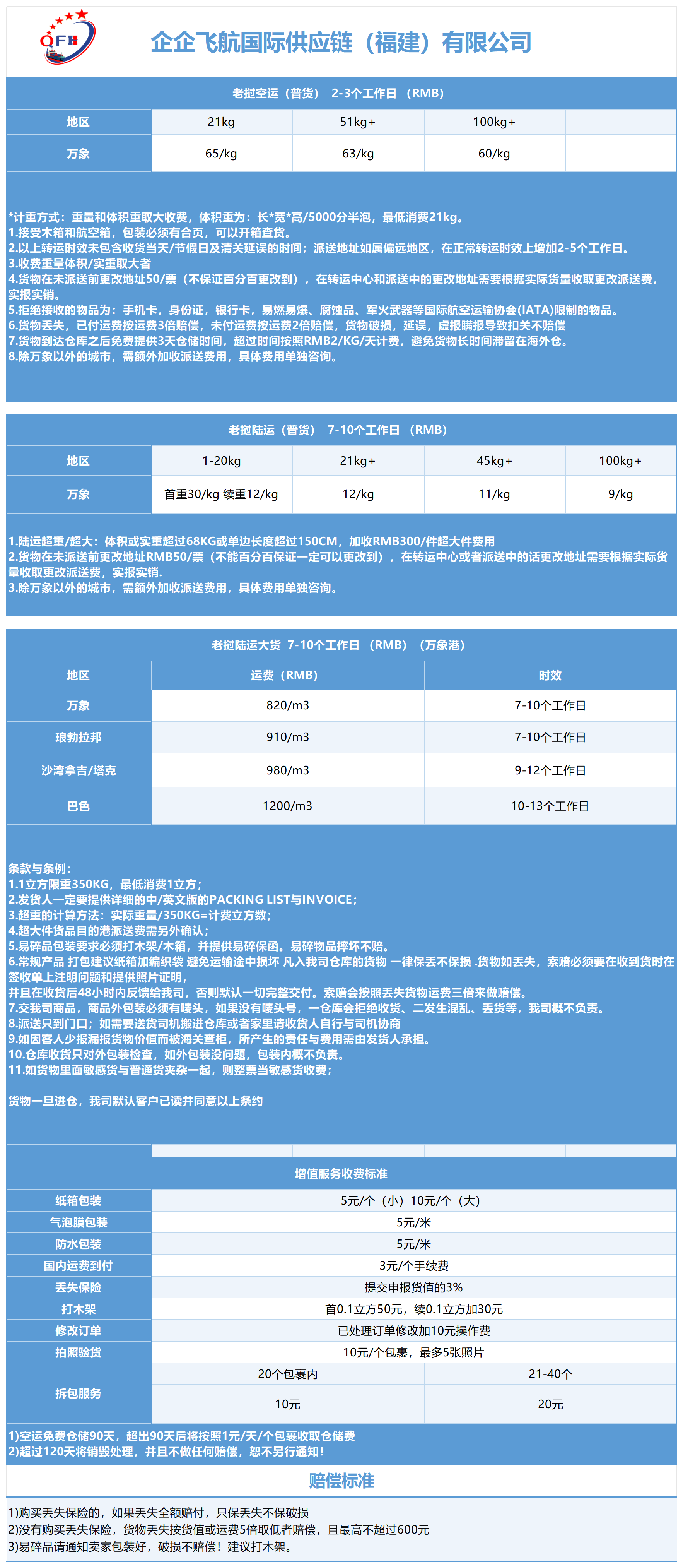 老挝运费报价